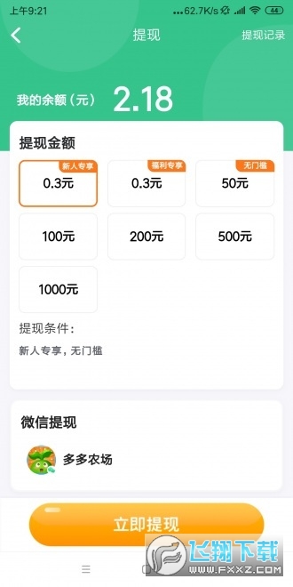 1、新人下载就送2元左右的新人红包,其中可以直接提现0.3元到秒到