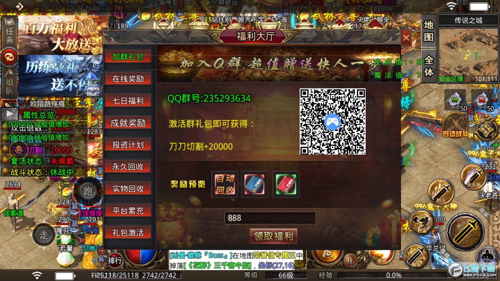 新人步骤③:打开福利大厅,领取加群礼包赠送〖自动回收〗,及各类技能书!刀刀切割+2万