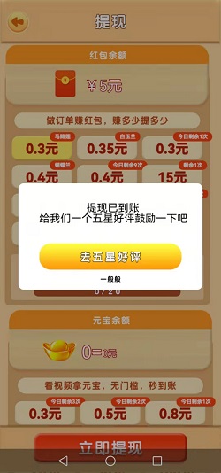 红包提现门槛低,秒到账。