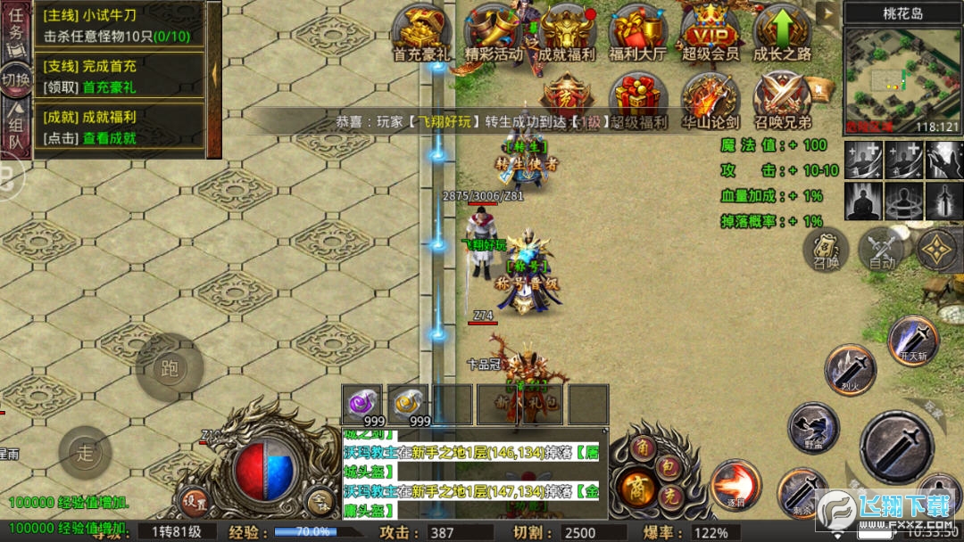 6、全地图爆率提升100倍:全图爆率提升,秒升级秒转生