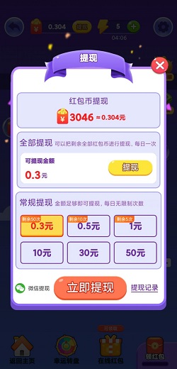 支持0.3元反复提取,更多的关卡直接挑战,红包任你赚。