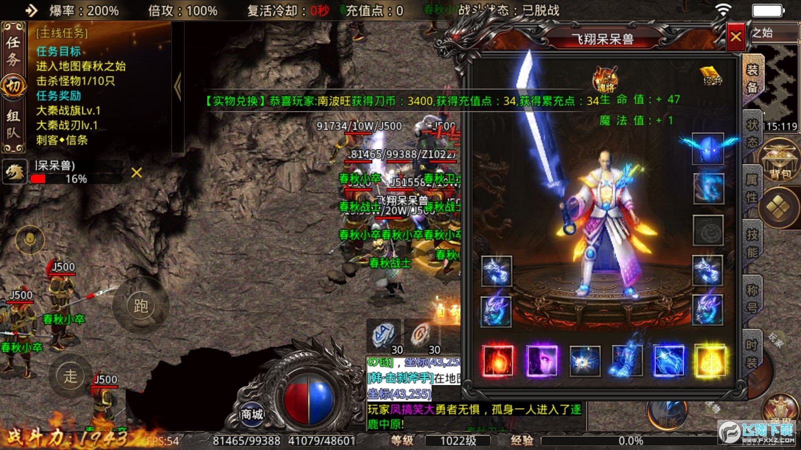 主打特色:超炫酷BUFF连招,自主搭配形成技能般存在,每个装备一套三连招,十八件装备相当于十八个全新技能,杀人杀怪超爽又好玩。