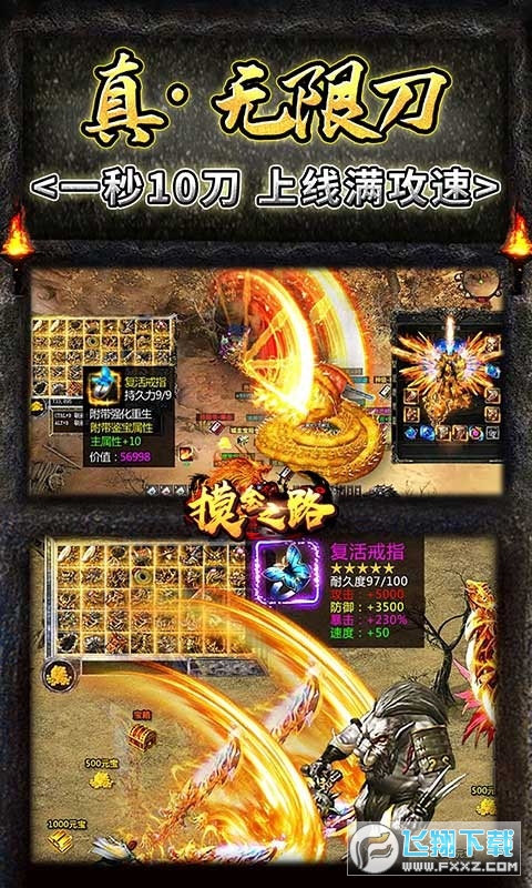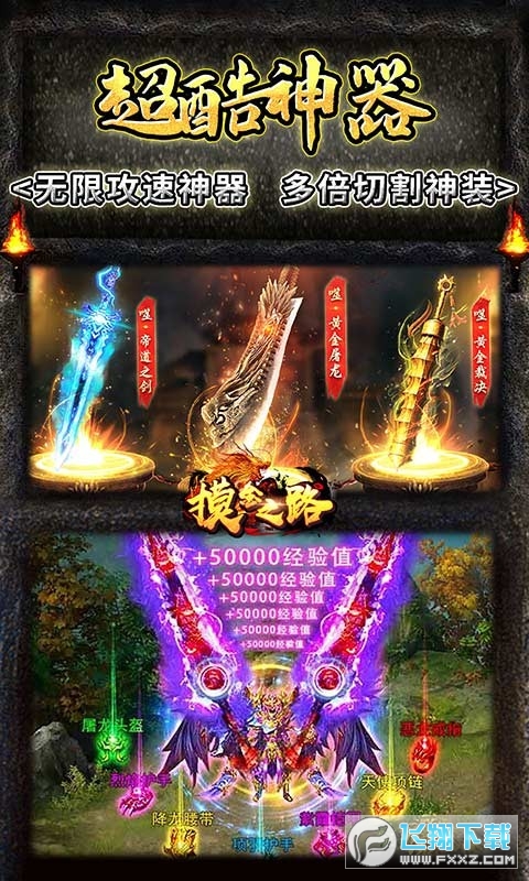 4、百套神装:怪物等级从1倍到百万千万倍,所有装备都是怪物爆出,让玩家打怪更有体验感
