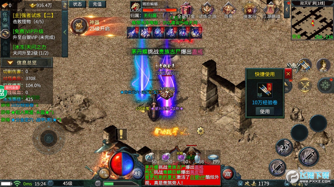 2、超即火爆的传奇手游,一个小怪三个终极装备,刀刀必爆,玩法多样。