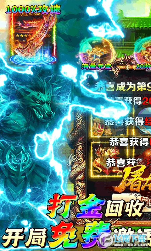 《屠龙杀(光速百万切割)》是一款极致攻速的传奇游戏,玩家可以通过爆装回收元宝,获得钻石、积分点等资源提升攻速以及吸血、切割等属性伤害。极致攻速享受,所有装备全部没有暗坑,全部都能刷怪爆出,亿倍爆率BOSS,轻松击杀,只要有时间,散人也能当榜一大哥,真正做到良心版本,参与游戏内限时活动,轻松获得上亿元宝、百万钻石,上千积分,只要肯花时间人人都可终极!