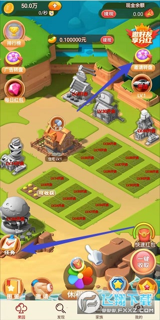 新增的功能我在下图标注了,能邀请好友的留意一下吧。爆金庄园新人送了0.1,自己多看视频拿奖励,如果田地看视频有问题就点下面那个漂浮红包。