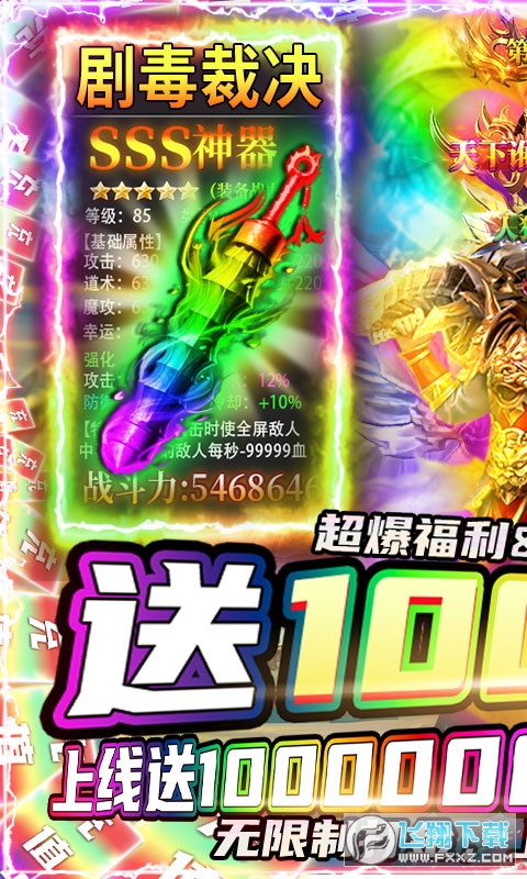 ★后缀说明:传奇超变版本,登录就送10000元真充卡,1亿元宝,超多精彩玩法,无限攻速、七彩战虎、七彩战甲、跑车座驾、超强连击