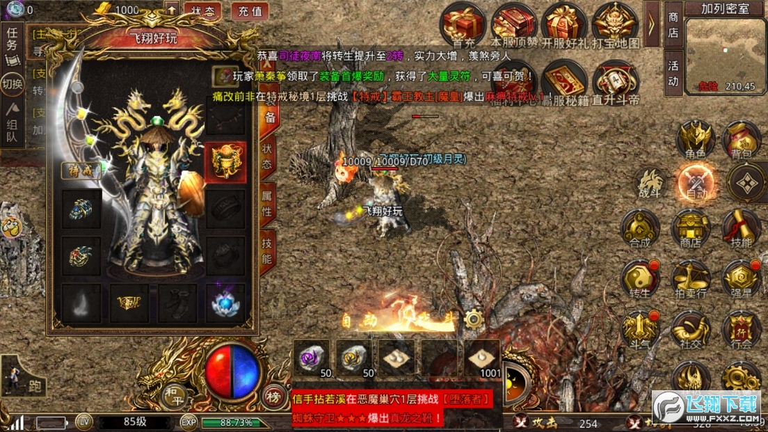 1、高度自由的热血传奇玩法,让玩家们轻松进行打宝体验。