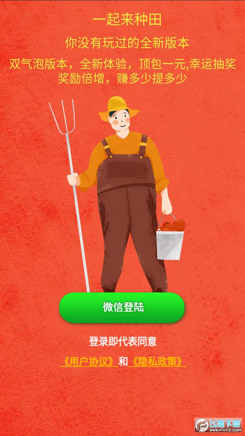 一起去种田红包版是一款类游戏,玩家可以在这里种植各种农作物,你需要为这些农作物浇水、施肥以及除虫,让它们茁壮成长,领取众多种子来收获更多果实,果实可以帮助你获取收益,还有超多红包领取,喜欢这款游戏的玩家赶快来下载吧!