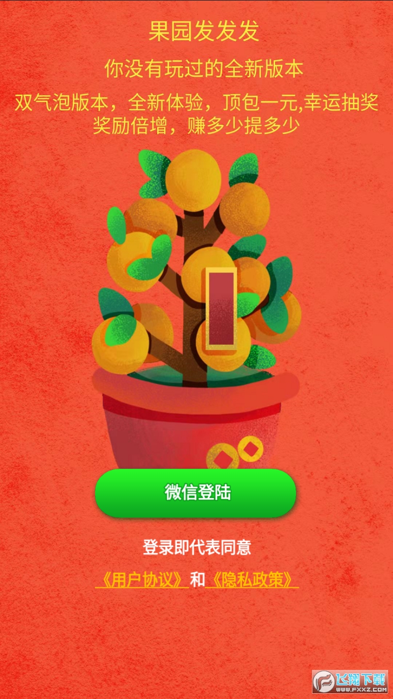 果园发发发红包版是一款可以领红包赚钱的手机游戏,每天种植果树,浇水施肥,果树长大之后,就可以获得很多的红包奖励了,这里还设置了大家最喜欢的抽奖活动,可以抽金币、抽手机、抽红包等每天还有固定的抢红包玩法,只要上线就有机会领取,操作起来十分简单,每天打卡领金币,一起来下载体验体验吧!