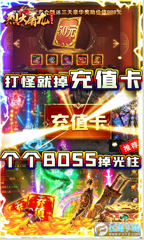 《烈火屠龙-GM送万充》是一款新一代沙城为背景的2D传奇类,拥有火爆全球的单职业体系,上线送GM5、神将伙伴助战、多技能酷炫切换,公会小队交互等设定!超多地图任你刷!升级快!超多BOSS砍爆神装!体验酣畅淋漓的跨服PK!