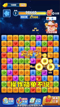 糖果消除时产生的特效也是如此的亮眼,让人会不禁就沉醉在这个画面中;