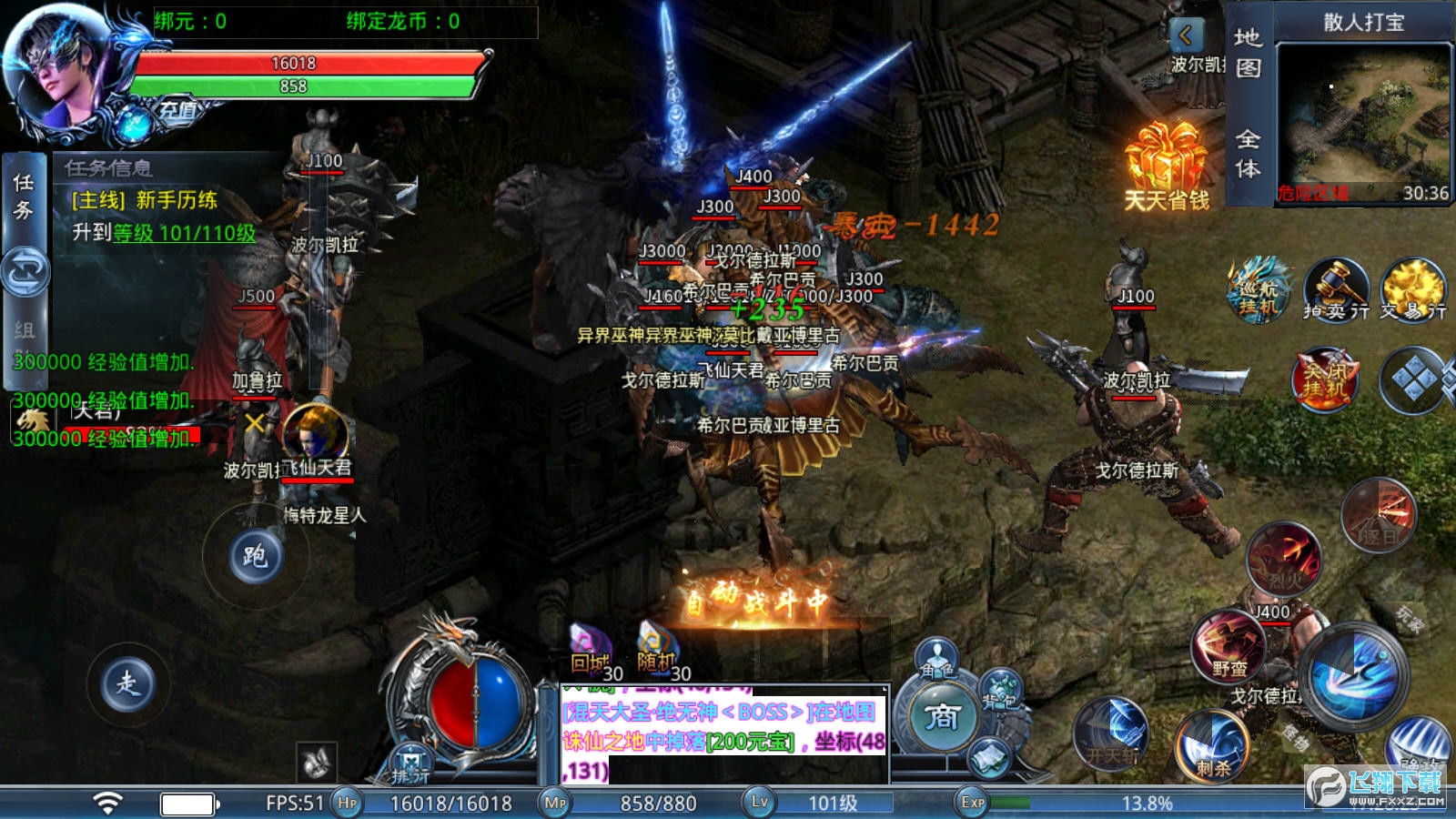 3、火爆复古传奇手游,下图刷boss战斗更加刺激,所有材料都能打出获得,高爆手游轻易获得,努力就有回报;
