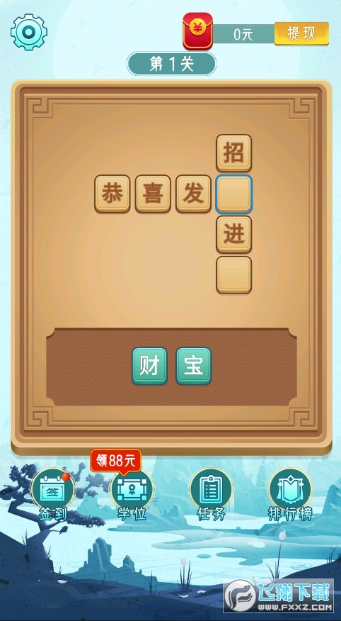 满0.3元提现,答对一道成语奖励0.9元,随时提现!