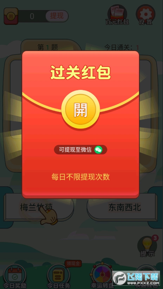 3.玩游戏赚钱,答对题目越多赚取的愈多,金币直接兑换现金没上限;
