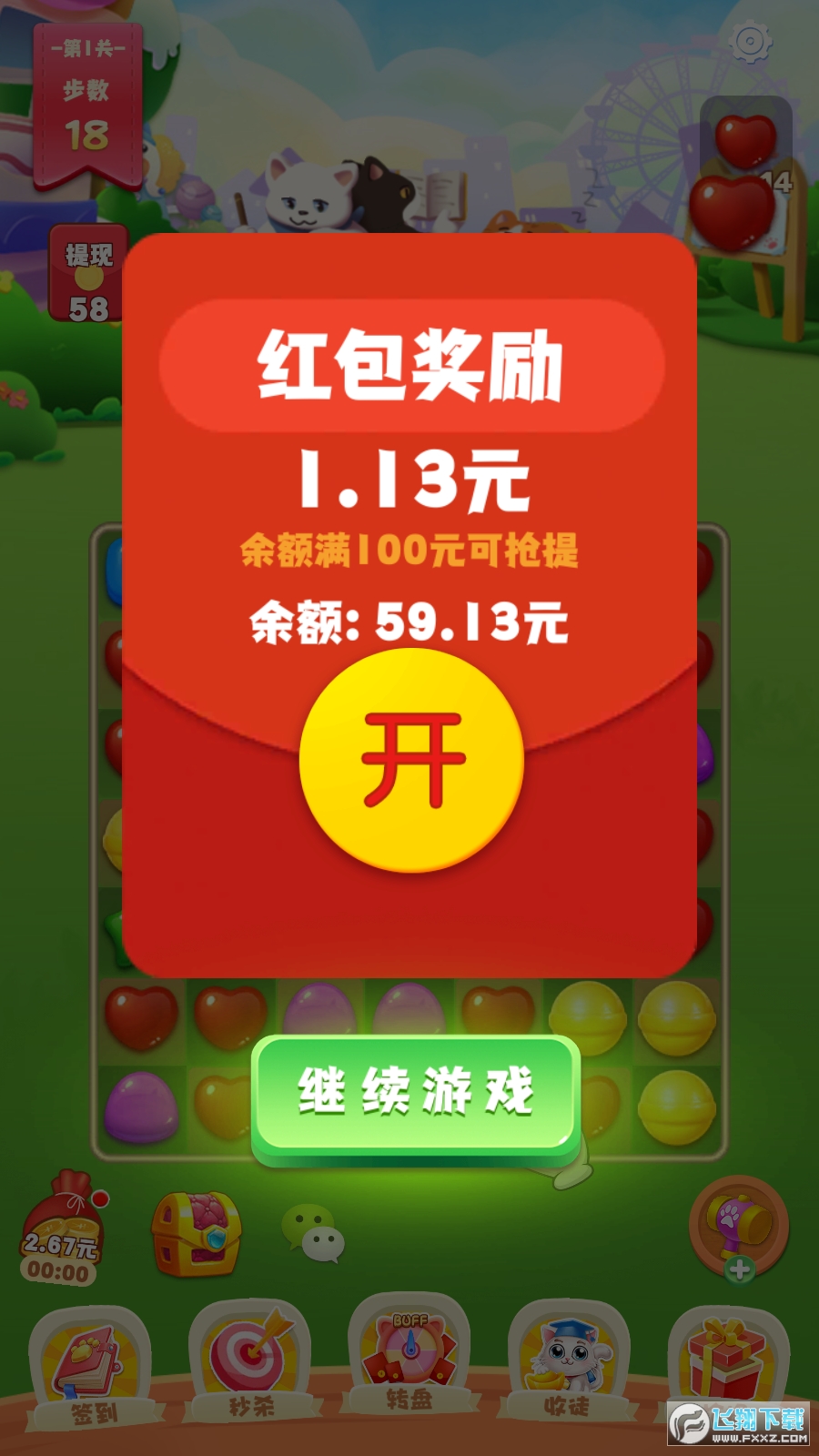 开心糖果消,下载APP,看一个广告。提现0.3元,秒到零钱!付款商户“游戏乐天堂”。全球热门消除游戏,你可以一根手指玩到底!开心糖果消,最好玩的快速简单消除游戏,没有之一!