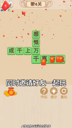 红包达人赚钱游戏是一款好玩的成语答题闯关游戏,经典成语答题游戏,欢乐轻松的玩法可以体验,在这里尽享答题的乐趣,精彩内容带给你更多的欢乐,还有许多的奖励可以领取,带给你更多的收获。
