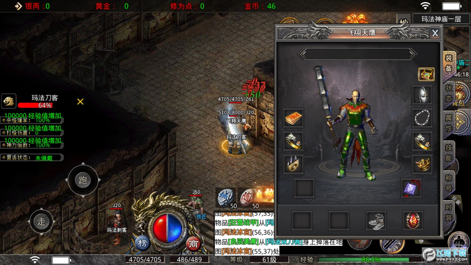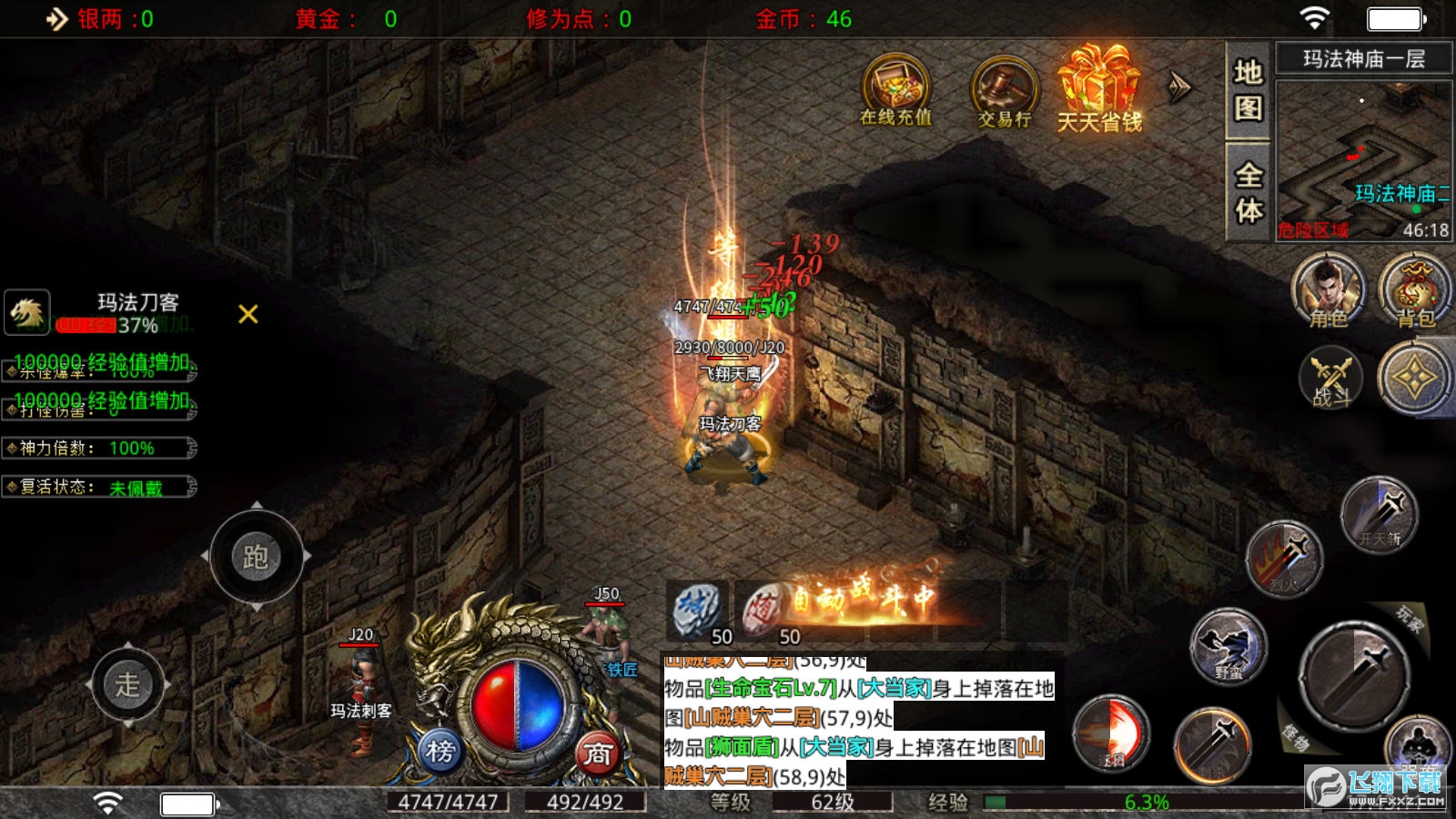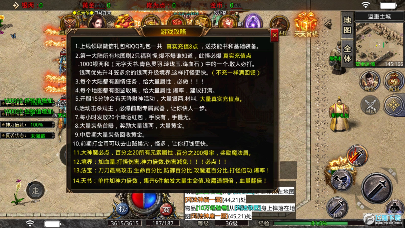 1.千人同屏在线,爆装刷怪升级,一招秒杀满屏,激烈的战斗让你震撼全场。