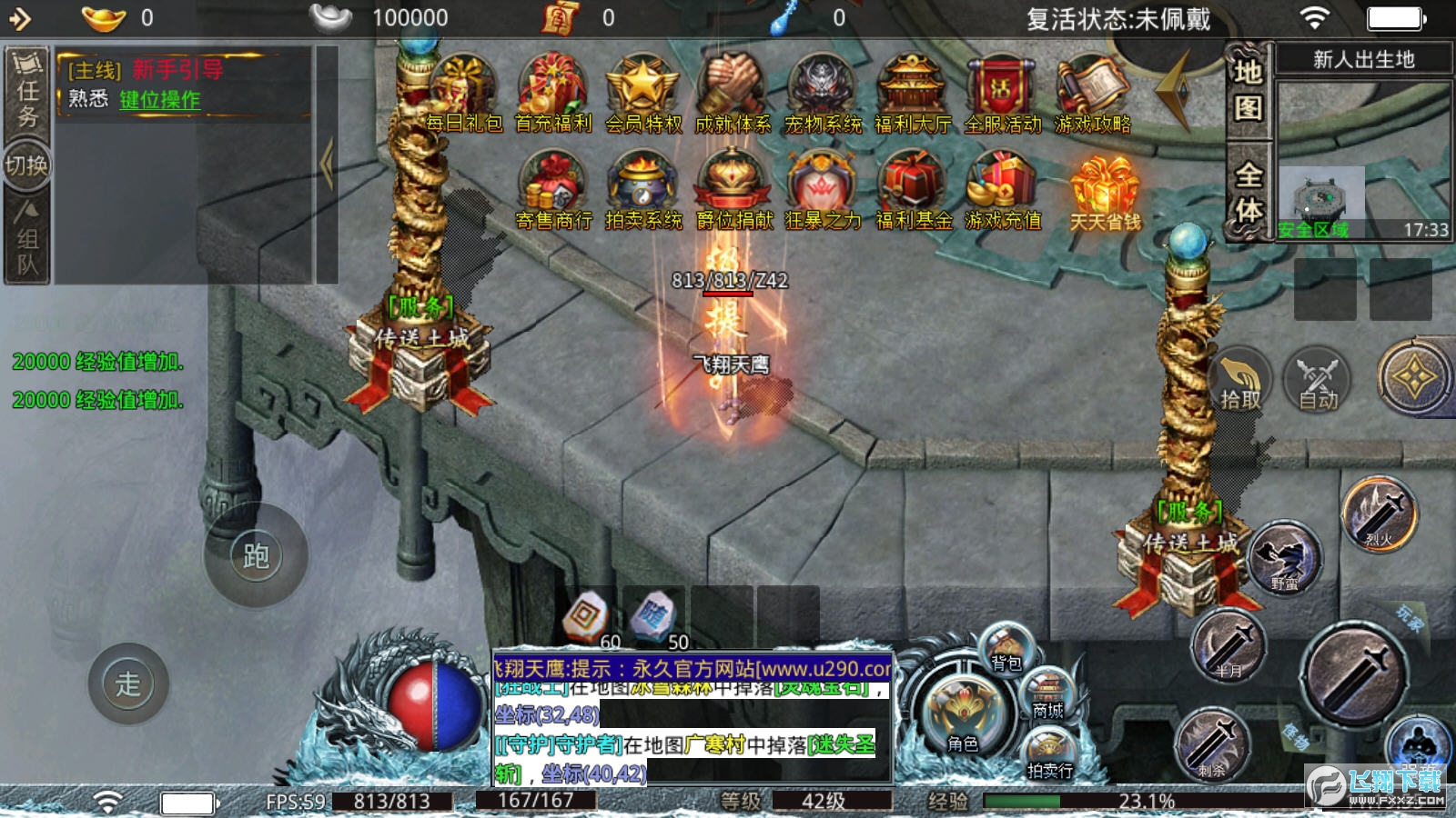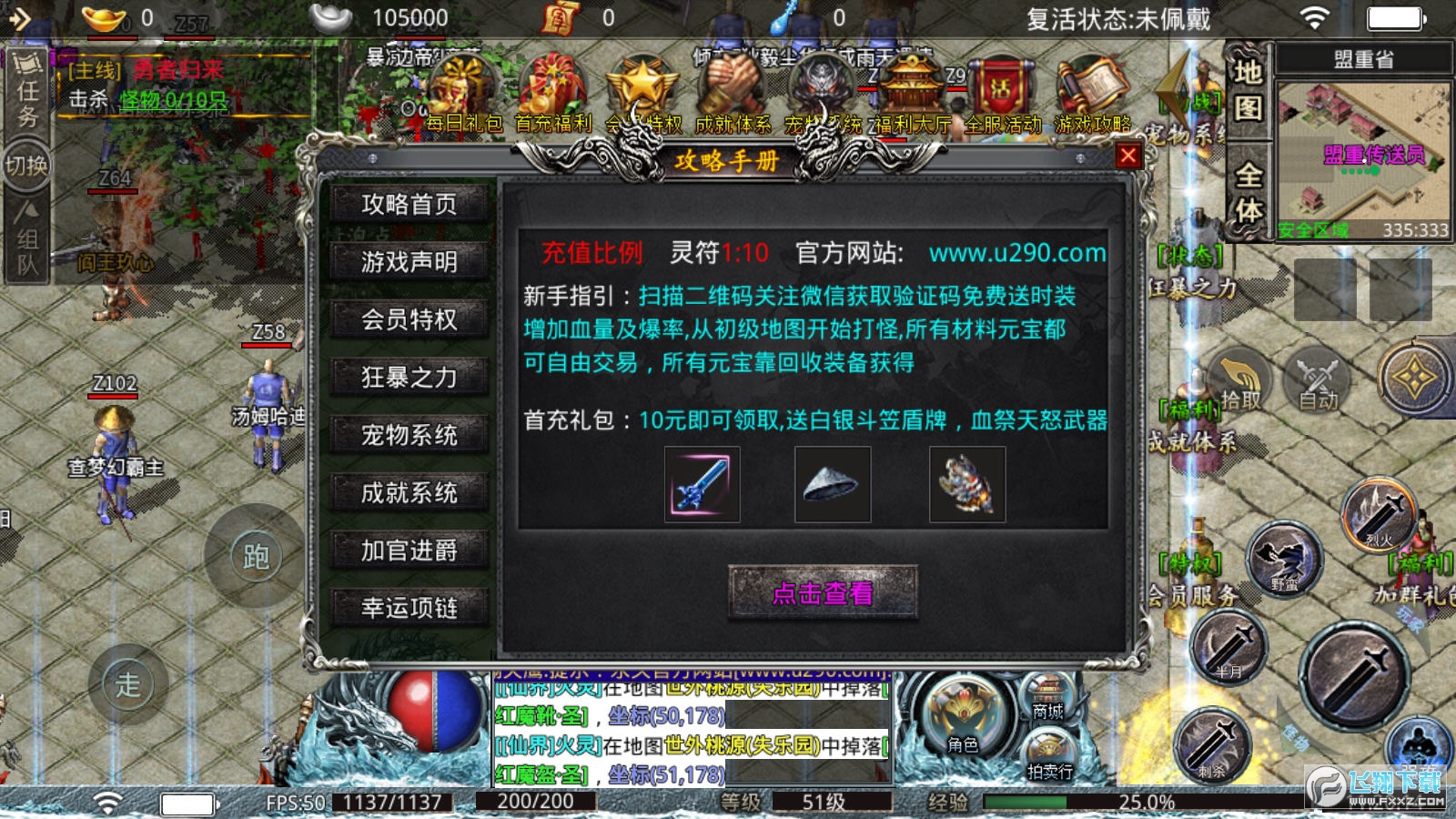 1.上线领取自动回收,自动捡取,自动,大量元宝和经验!