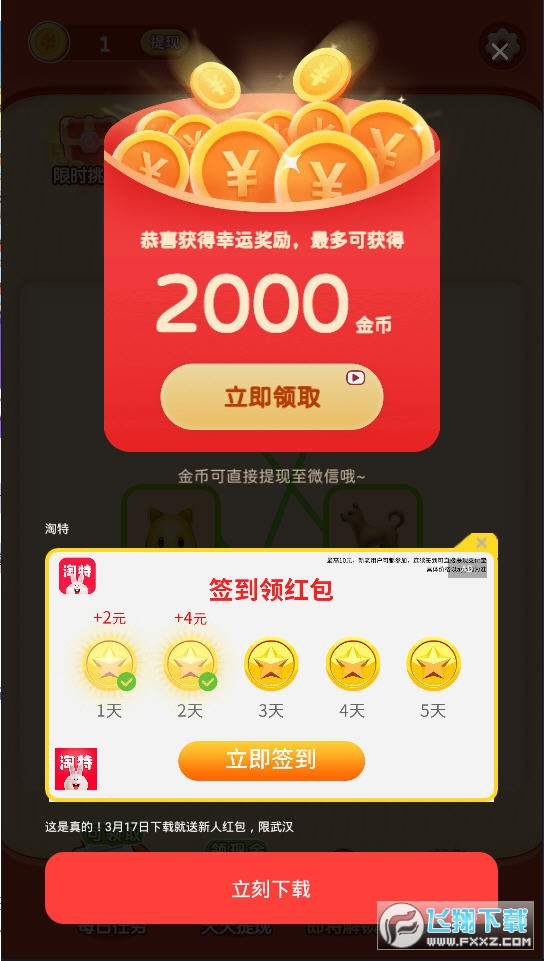 2、0.3元提现,100金币≈1元,可以提现!