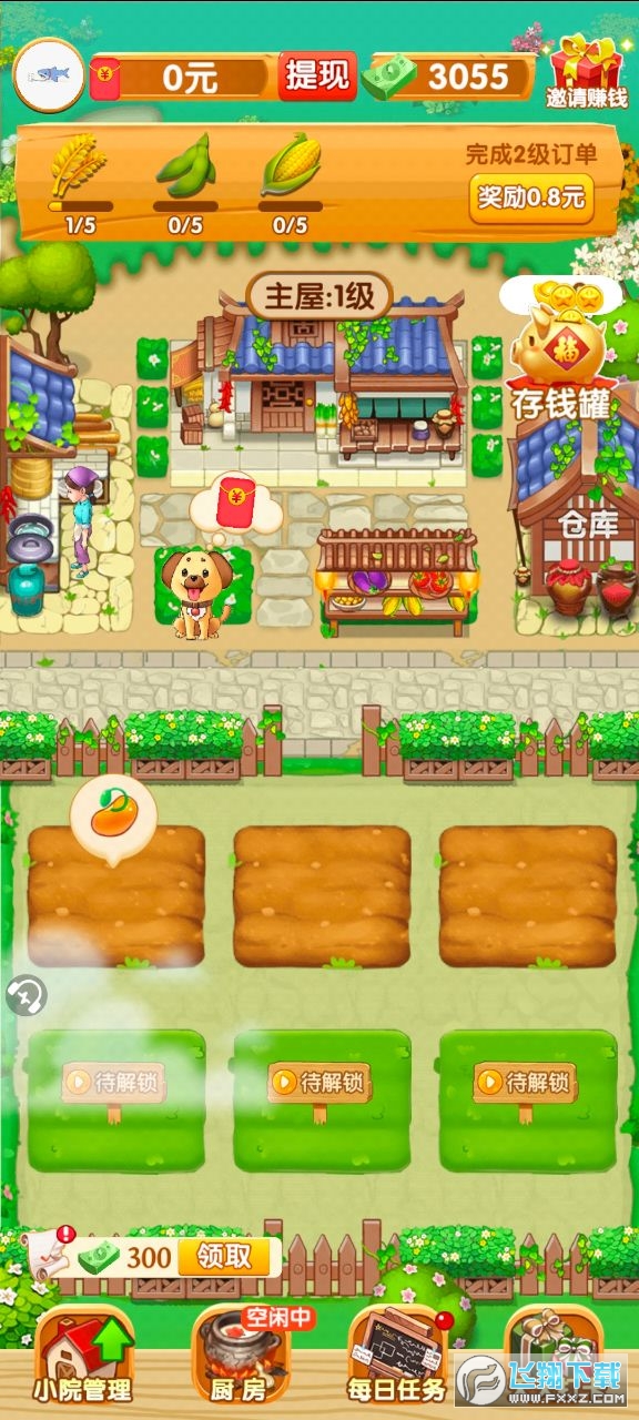 2、让自己的小院多多丰收,极简的操作方式,解锁各种各样的种子和植物。