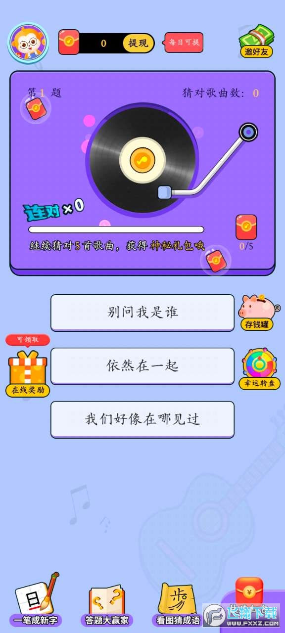 3、根据音乐的某一段旋律,让我们快速猜对歌名,就能领取特别多的游戏奖励。