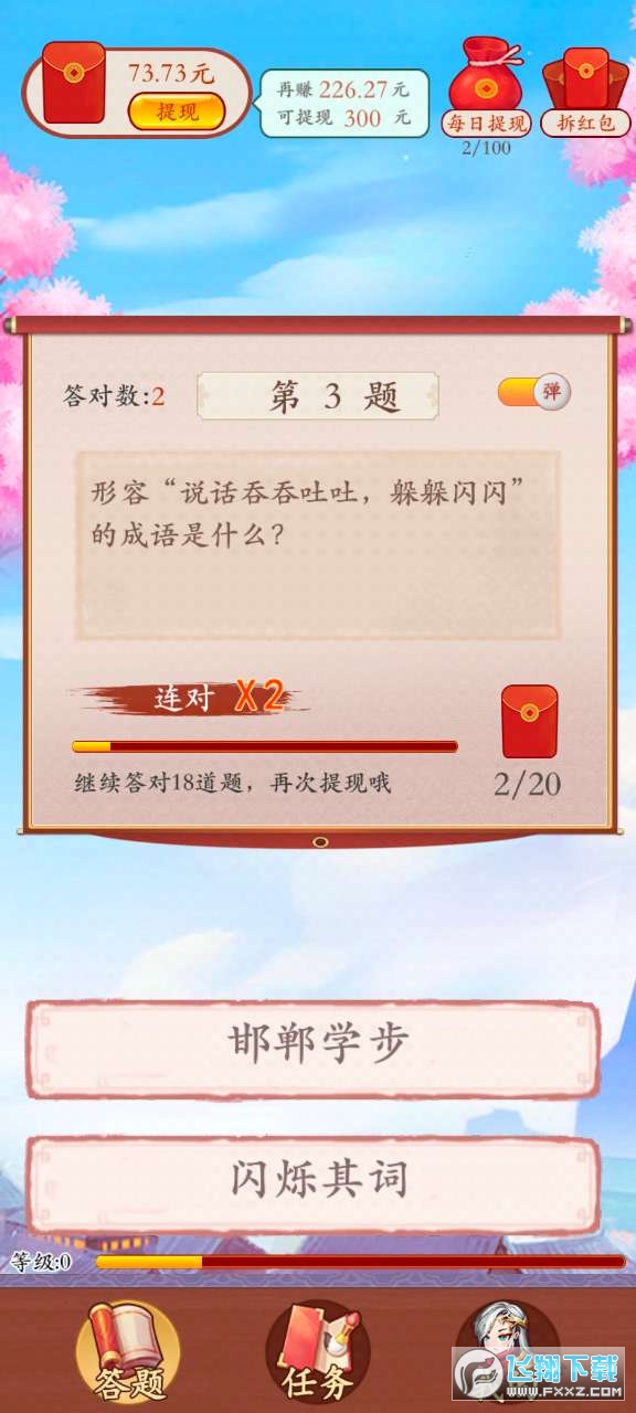 2、十分简单的操作模式,不断闯关,解答题目,奖励丰厚。