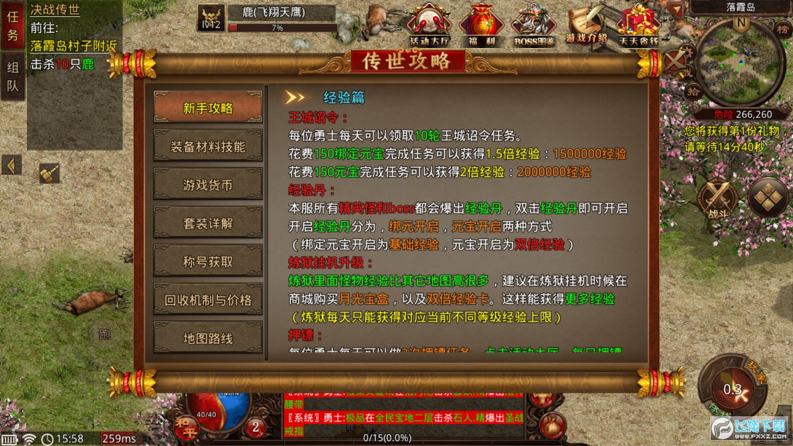 在游戏的新手任务中,会穿插很多经典玩法的操作引导。比如占领沙城、世界Boss等等。在这些任务中,玩家可以提前体验各种经典玩法的流程,感受激情。