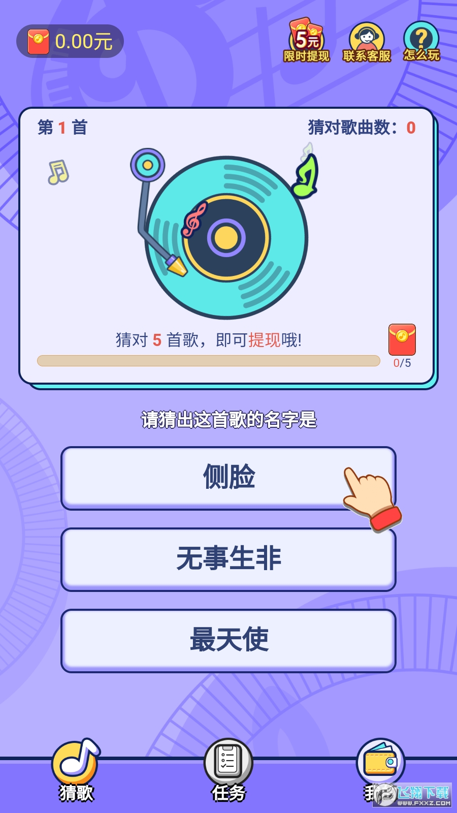 歌王猜猜猜下载APP,猜对5首歌,提现0.3元,秒到零钱!付款商户“开心福利”。