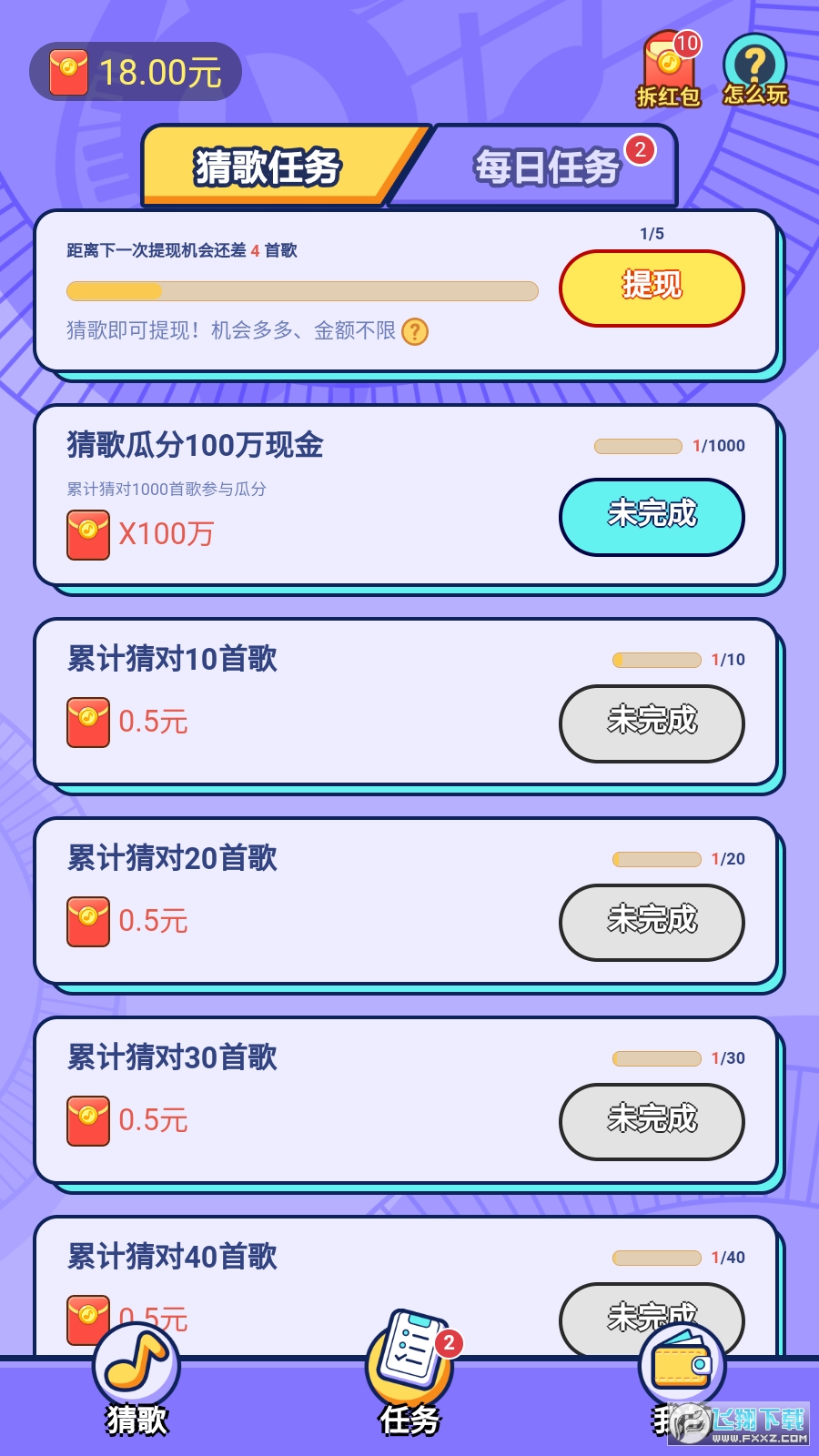 关卡的难度和你的歌曲库有关,听过的歌越多,就会越容易,每过5关就能够领取红包。