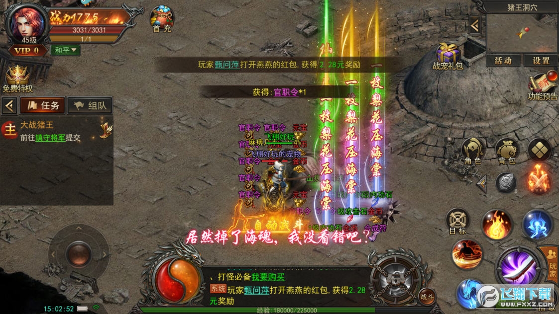 1、战士、道士、法师,多个职业的炫酷技能任你释放,相互配合还可打出超变态的组合技能。
