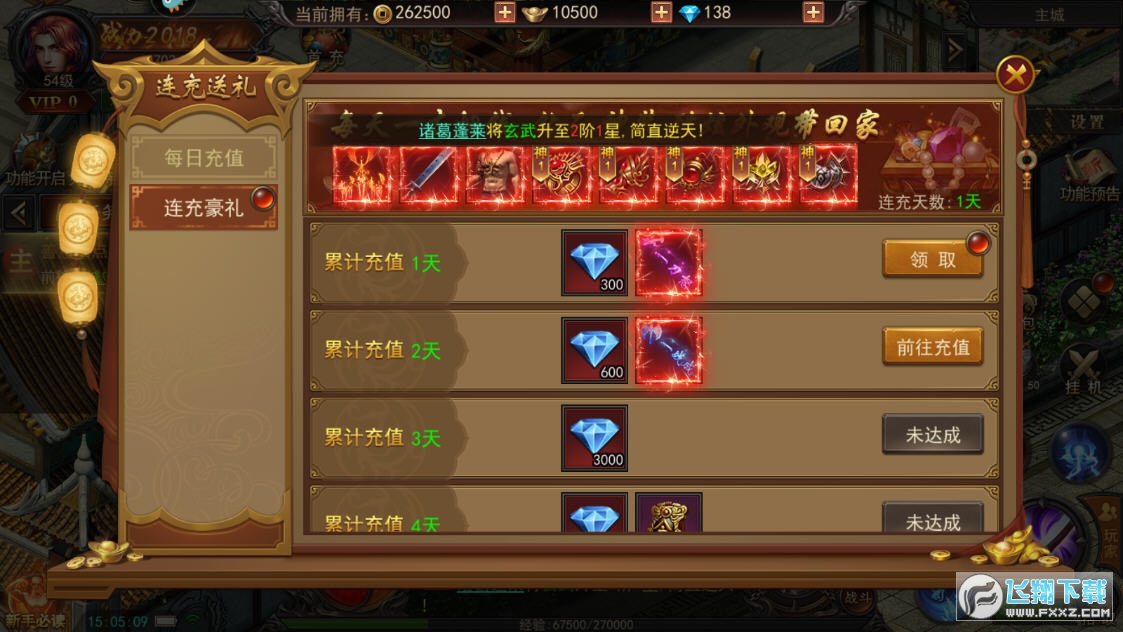 一:首充最高可获得双倍钻石,充值128先是领取双倍钻石,然后可以通过购买开服礼包、战宠礼包、特戒礼包这些性价比极高的礼包,提升实力快人一步,抢夺BOSS变得简单了。还能够领取首充的三档首充大礼,一套时装加上三套圣装,炫酷外观与稀有属性的加成,让你在各种BOSS的挑战中快人一步!