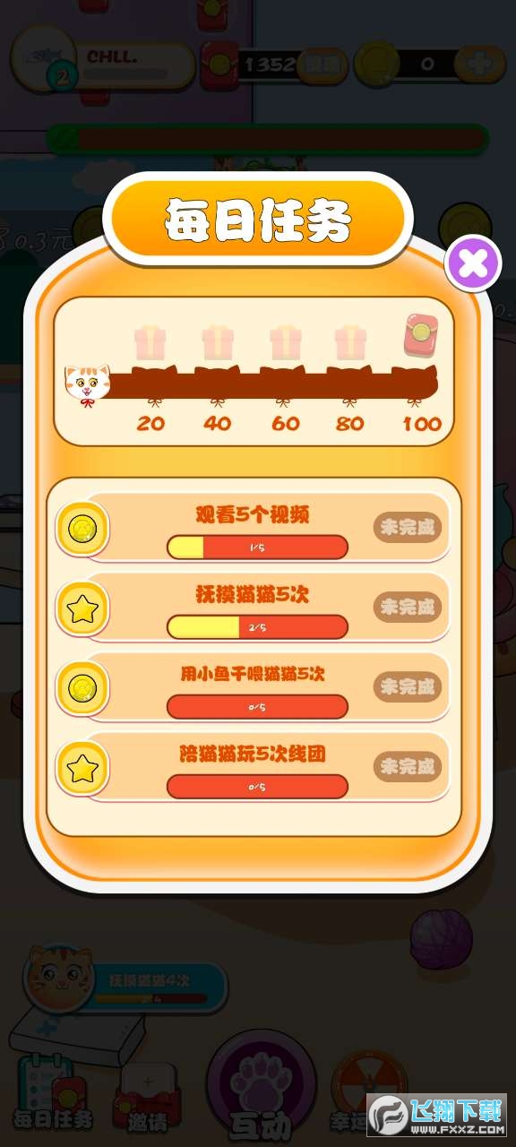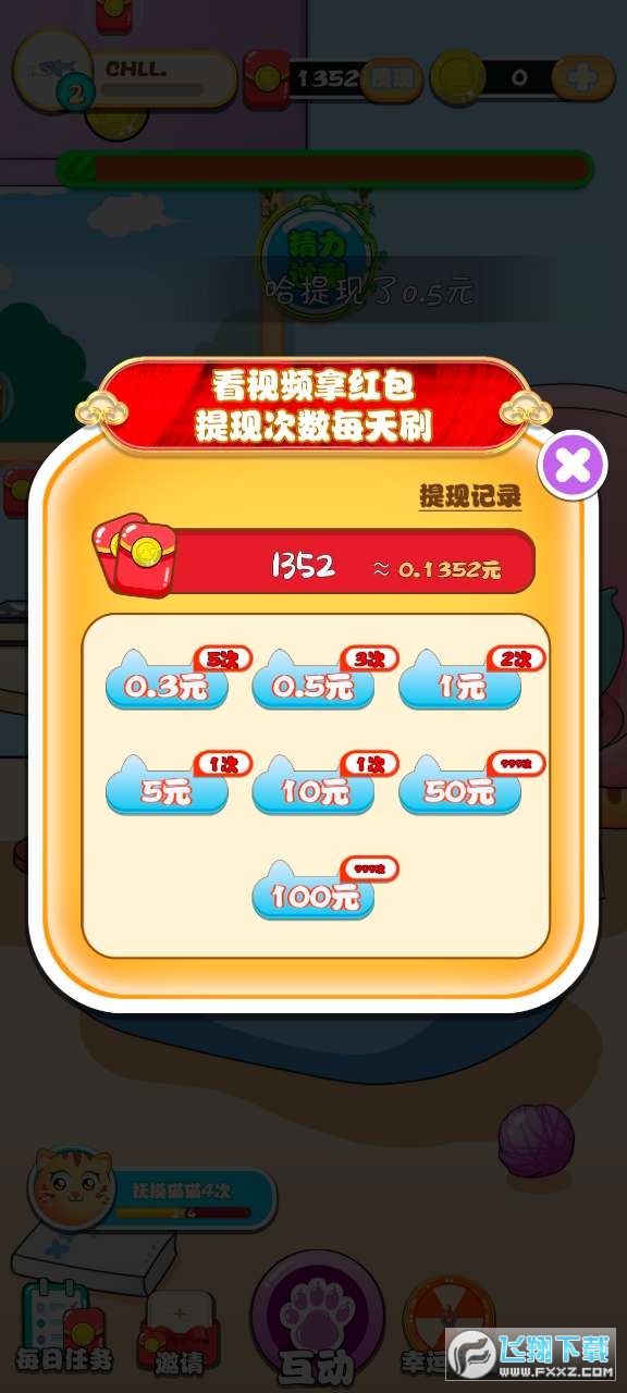 3、每天需要饲养的猫咪任务完成,达到一定的成就或者是指定的任务就能获得红包奖励。