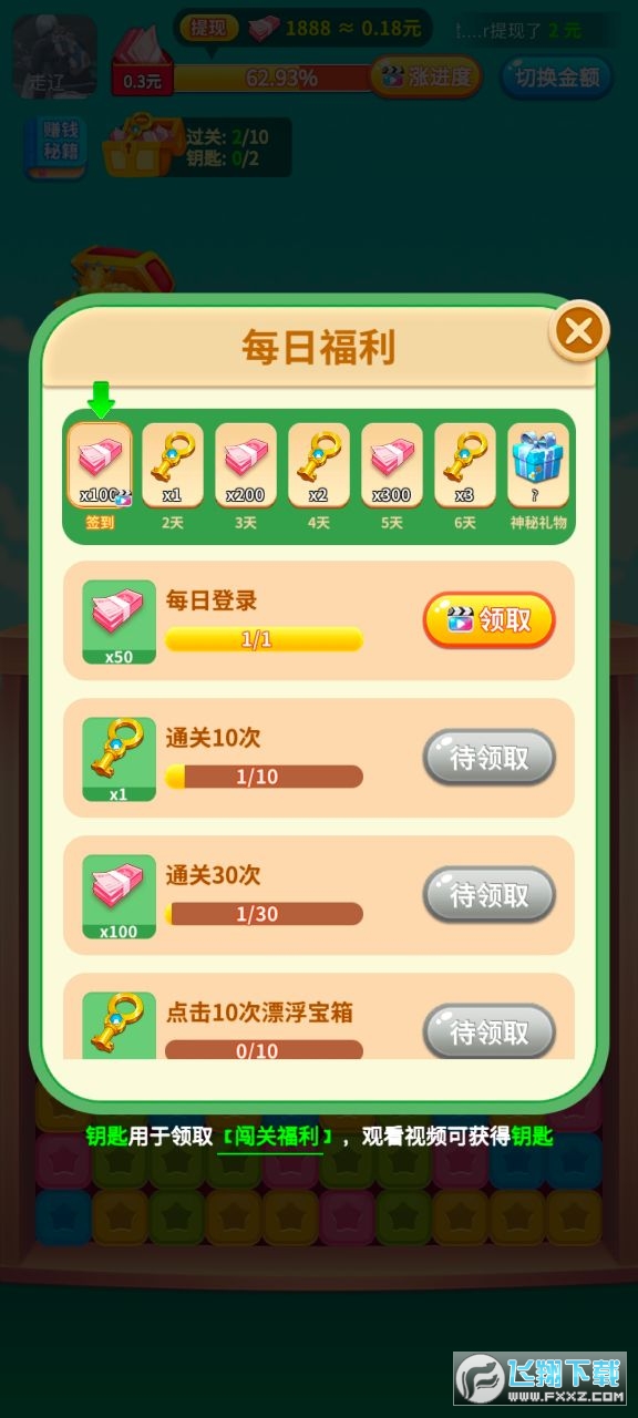 3、用你的惊人实力去征服每一个关卡,获得更多红包的奖励,来领取你的专属福利吧。