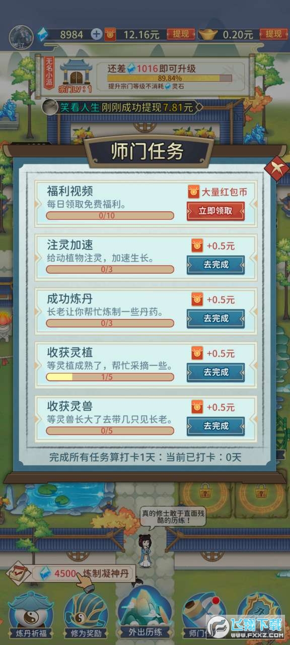 1、爷青回!世外仙山上线了,外出历练,你能几天修炼成仙。