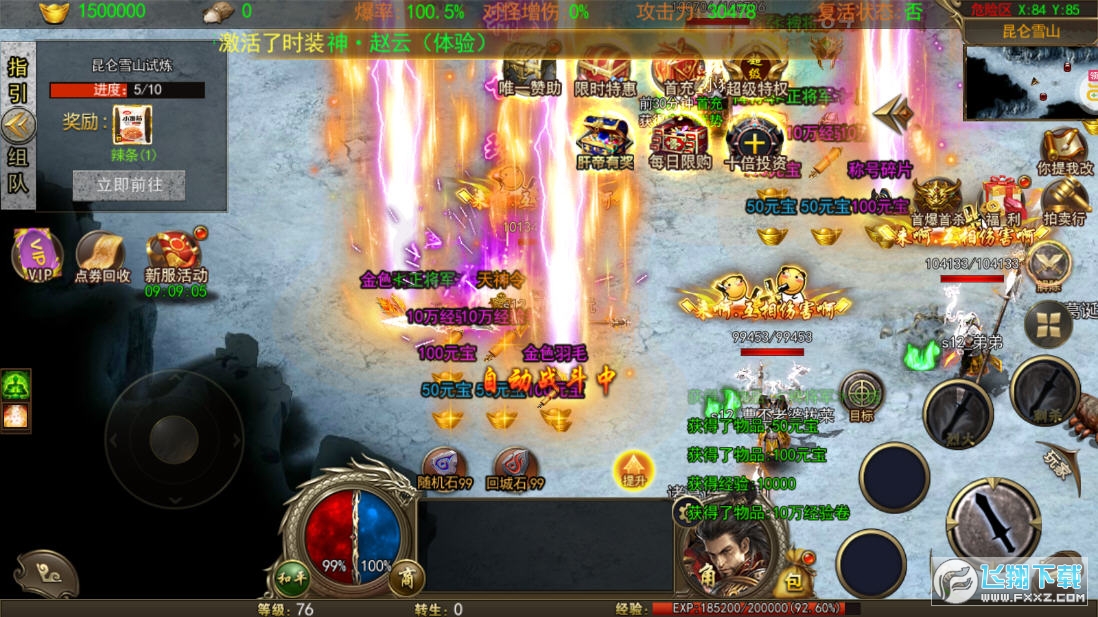 《烈火一刀(送异火满切割)》上线送满级VIP、星耀特权、神赵云体验时装*1、限定称号*1、元宝*50万。