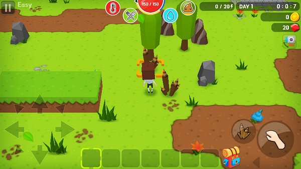 当你能够制作一些基本的防身工具和武器之后,可以开始狩猎,注意每天的天气变化和温度变化。