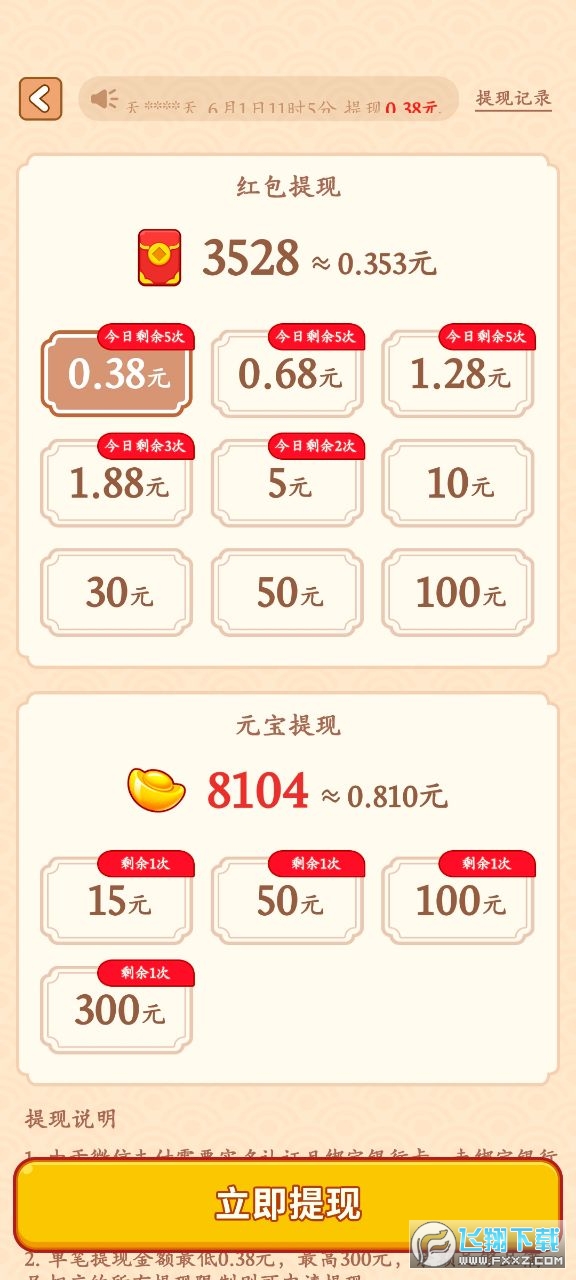 1、不同的成语挑战内容会有不同的奖励,自由选择让自己获得更多红包。