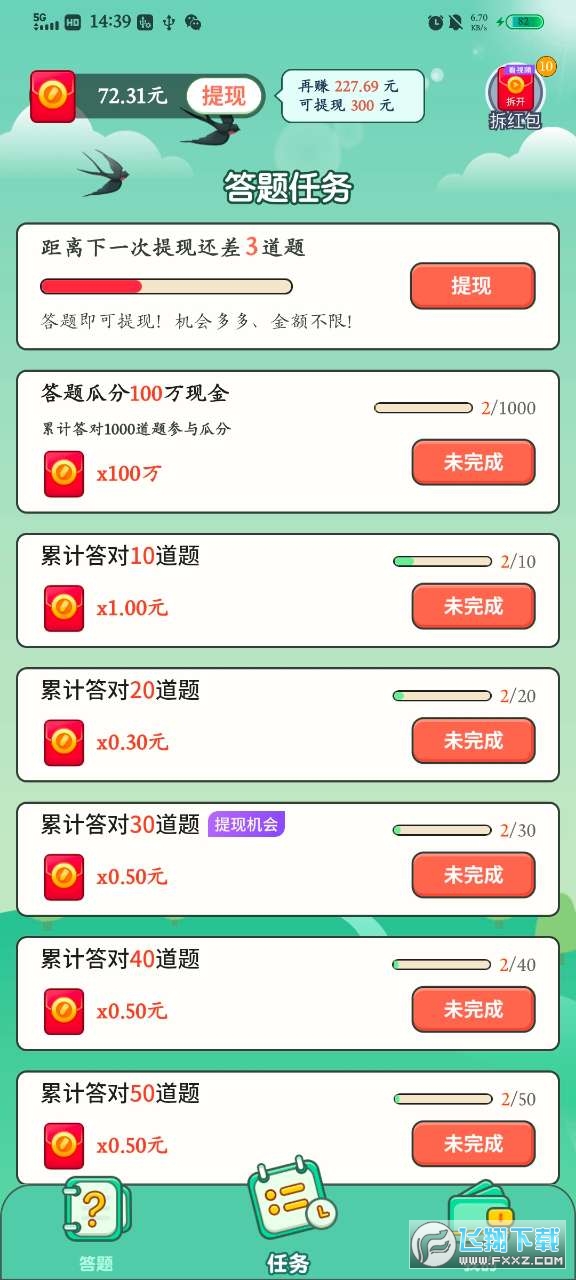1、轻松答题,学到知识,赚到红包,钱才两收。