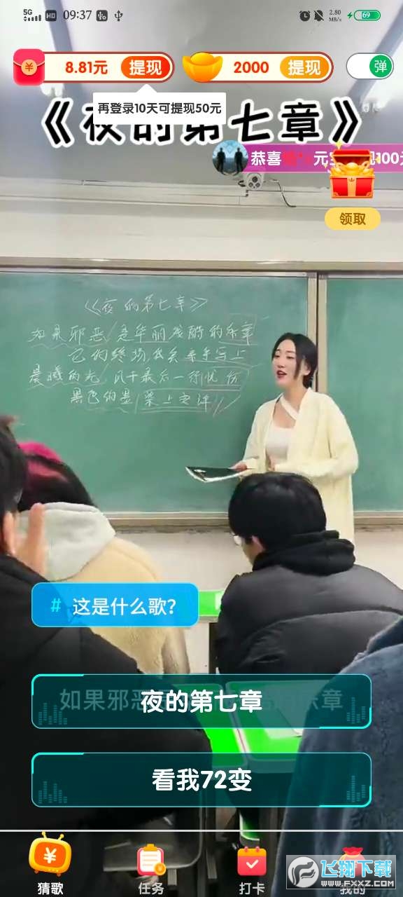 2、经典的欢乐猜歌玩法,操作简略,轻松上手,各种奖赏收取。