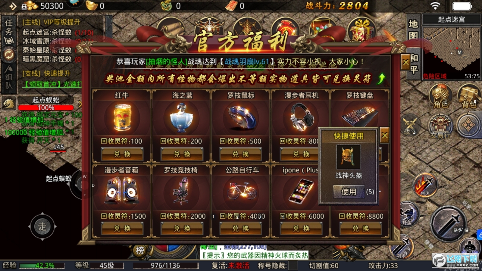 每一次升级都有丰厚的材料和非常不错的装备领取,让你能够更加轻松的打怪。
