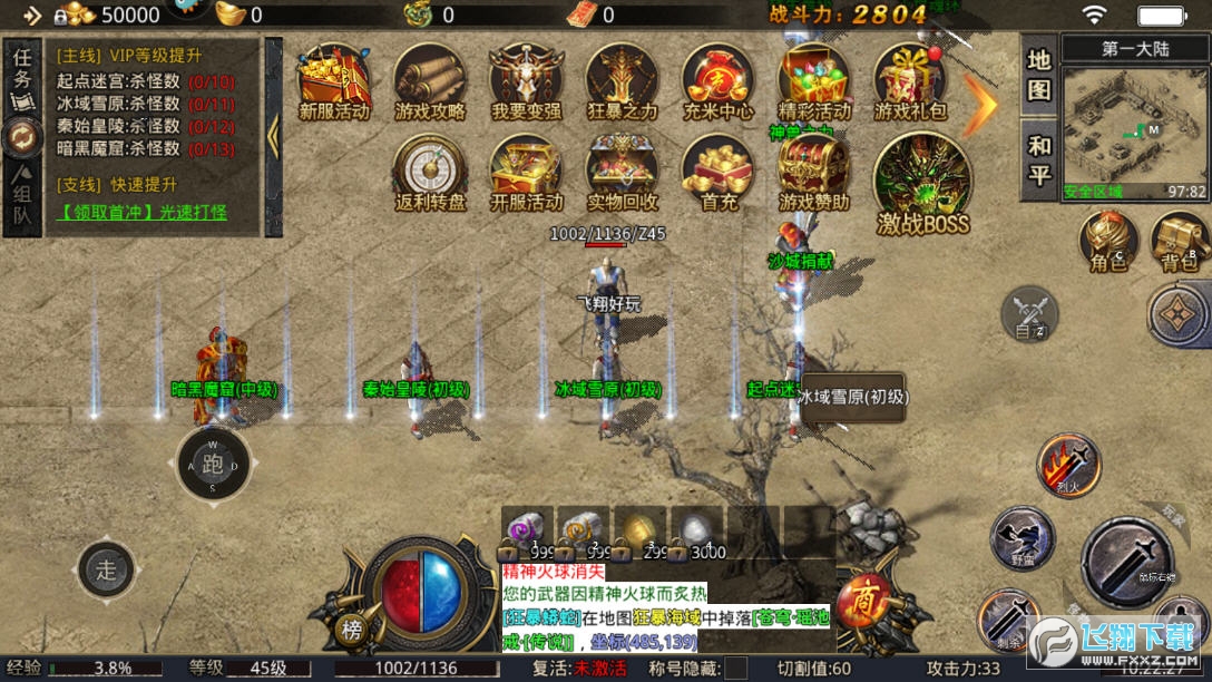 3、爆率全开放,地图高级小怪也能掉顶级,超多BOSS让您打到手发软。