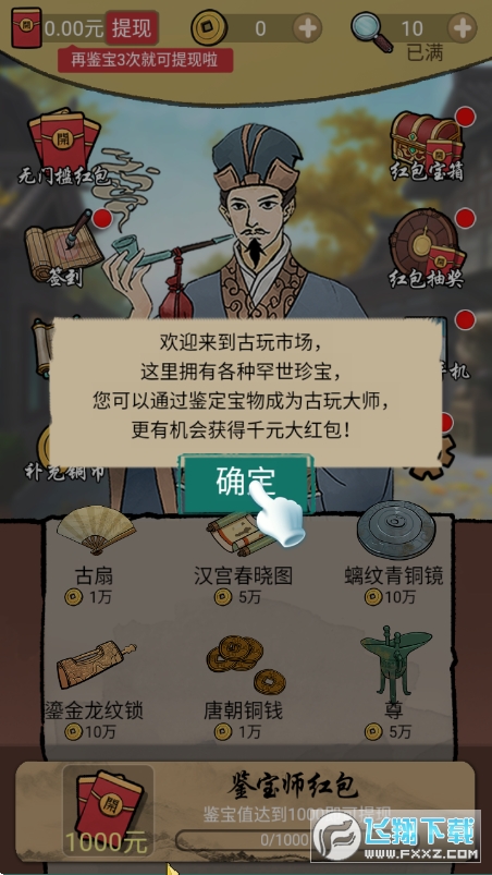 2在摊位上摆放上各种各样形形色色的古玩宝贝,开始鉴宝模拟,丰富的红包奖励等待你的到来,游戏的乐趣是十足的。