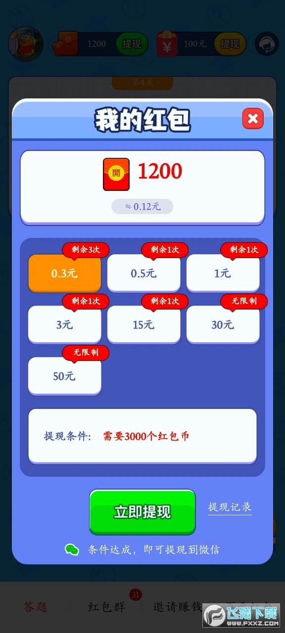 2、玩家将会通过答题的方式去展开自己的闯关,而每一次完成闯关都是能够让自己获取到更多的福利奖励的。