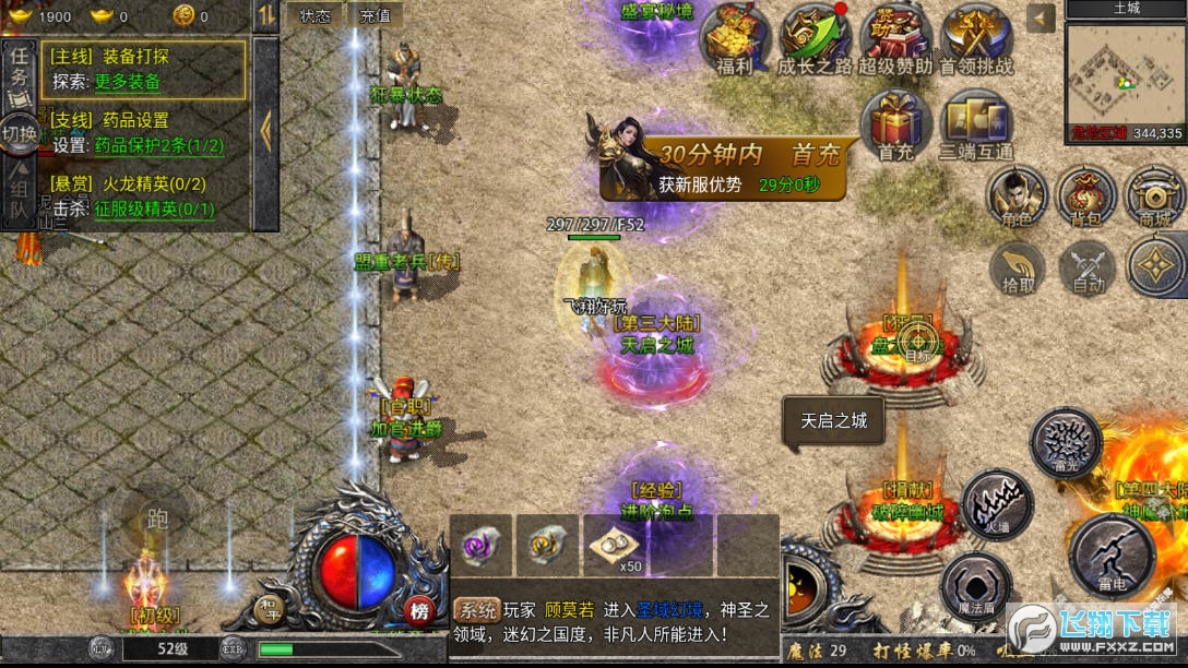 2、多样玩法,野外PK、激战BOSS、跨服帮战等多种传奇玩法,体验激情战斗的快感。