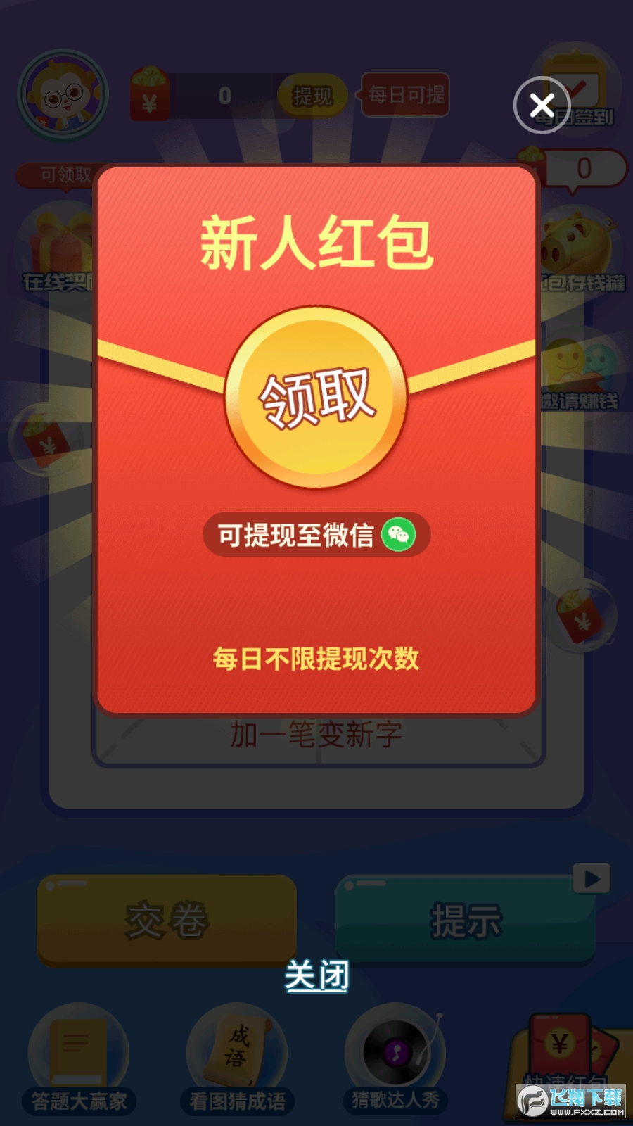 1.汉字大挑战经典的红包版答题闯关游戏,精彩的红包奖励体验。