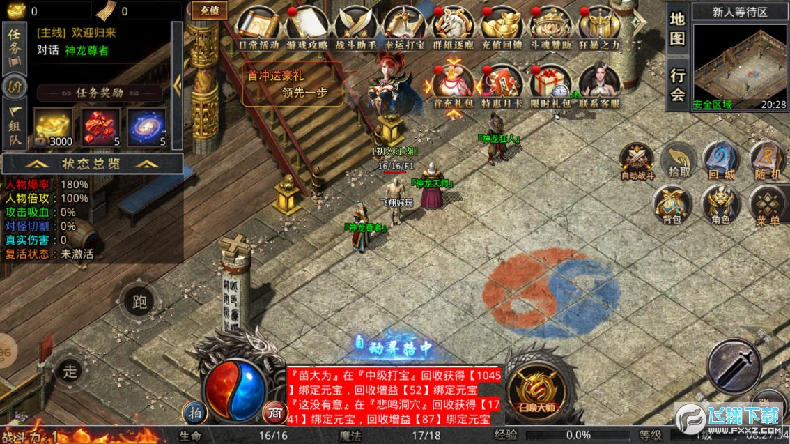 3、万人同屏在线互动,带你体验非常超大壮观的攻城场面,再现经典热血传奇。