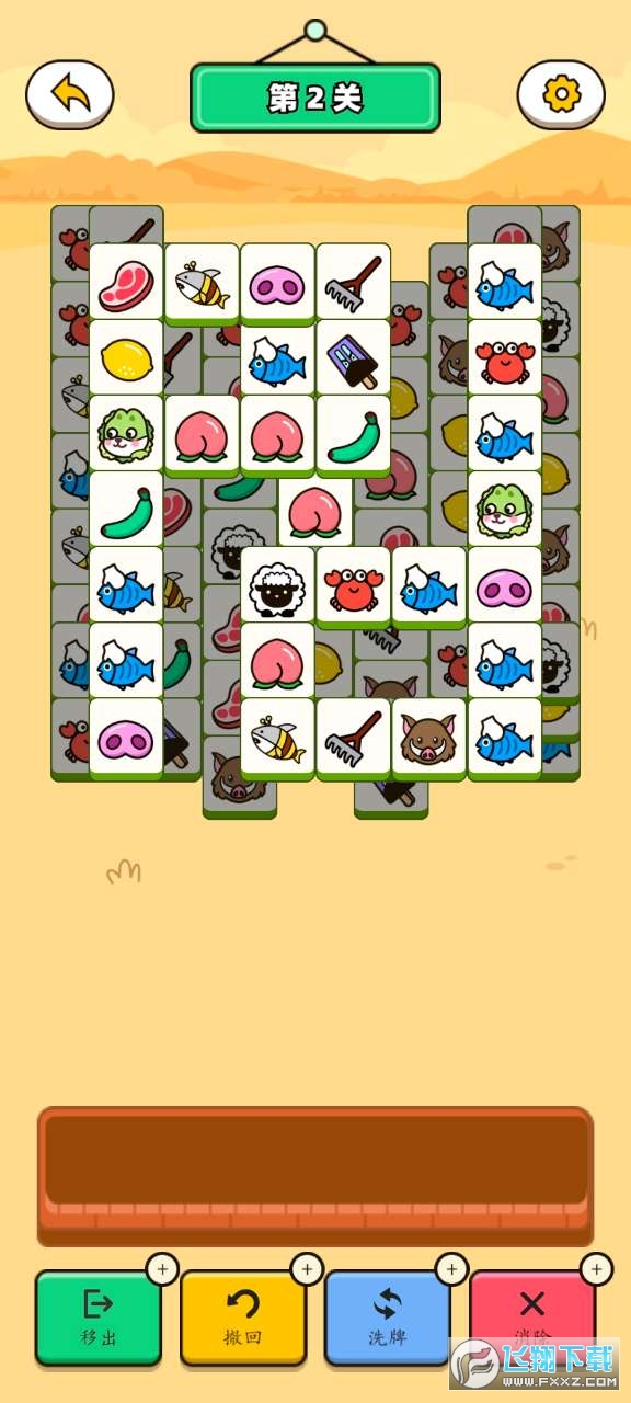 2、全部方块都消除完毕,即可顺利通关,一旦七个卡槽满了意味着挑战失败。