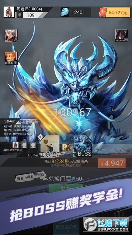 3、抢红包:这是算术英雄里面最重要的功能,我们所有行为都是为了在这里面换取红包。每50龙鳞可兑换一张门票,兑换门票后自动击杀10秒BOSS。