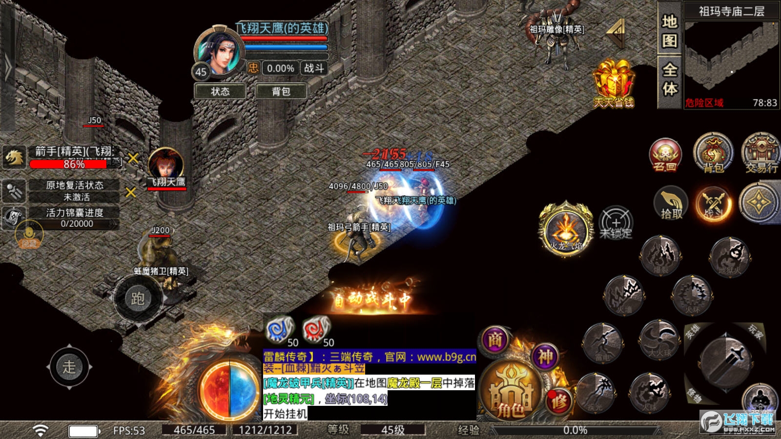 1、整个游戏玩起来还是非常不错的,延续了复古传奇的经典,每天只需要估计就能自动刷副本爆装;